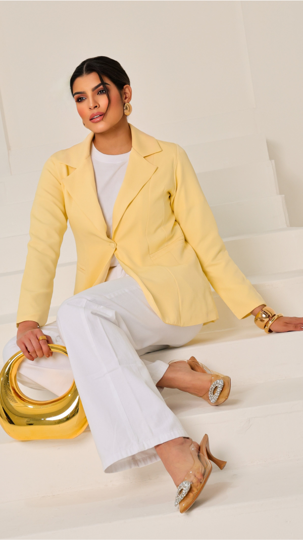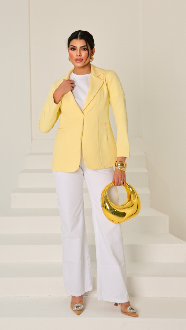 Elegância e sofisticação em cada detalhe.Blazer Amarelo Manteiga em alfaiataria com forro, botões forrados e modelagem acinturada que valoriza a silhueta. A peça coringa para looks modernos e atemporais.