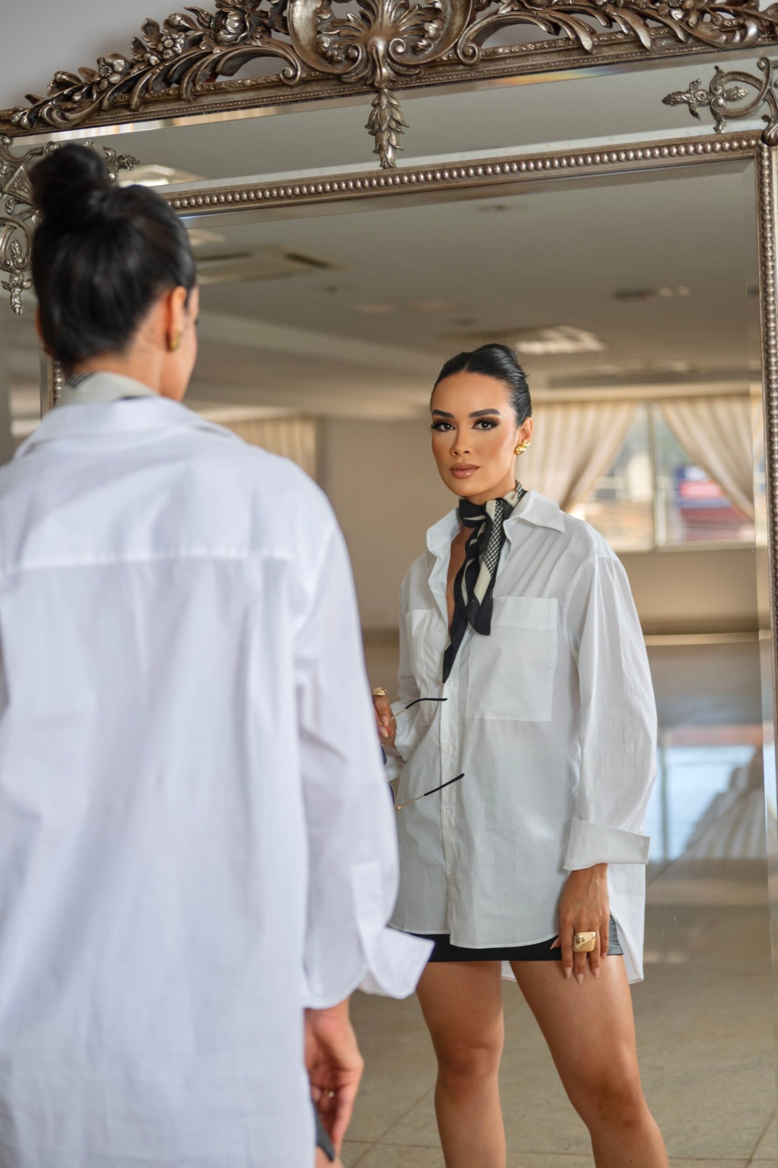 Elegante e atemporal, a Camisa Leonina combina a sofisticação do risca de giz com um toque contemporâneo que transmite leveza e frescor ao visual. Seu design valoriza detalhes clássicos — como a gola tradicional e o bolso frontal — em harmonia com o corte estruturado e o caimento impecável do tricoline.