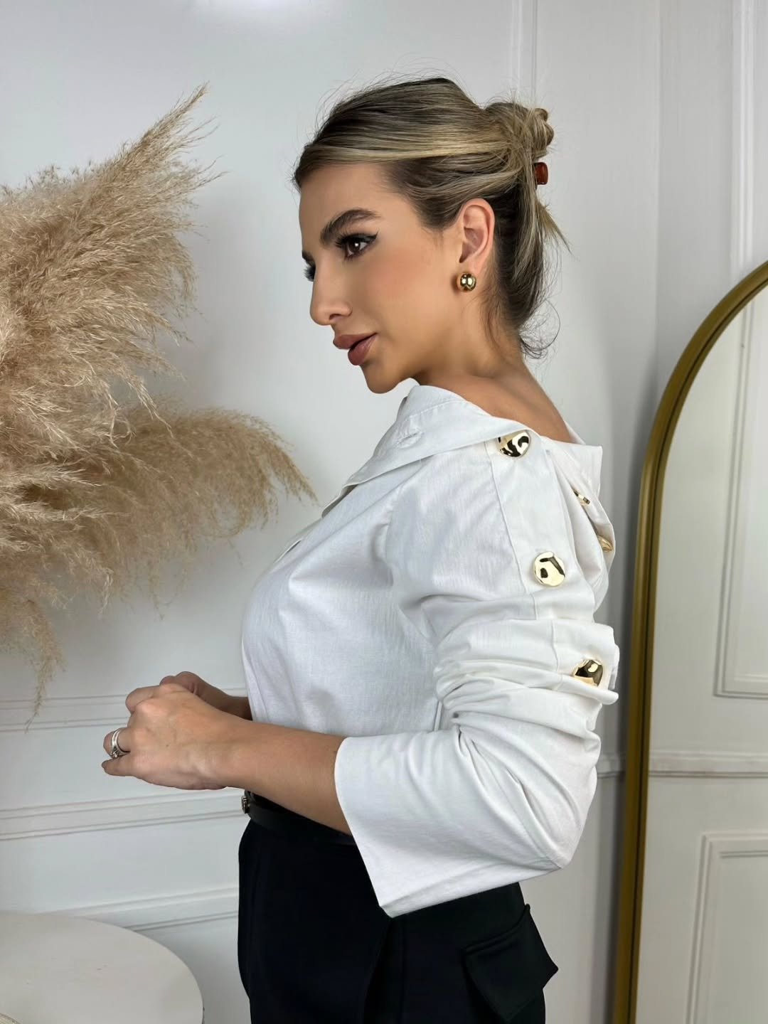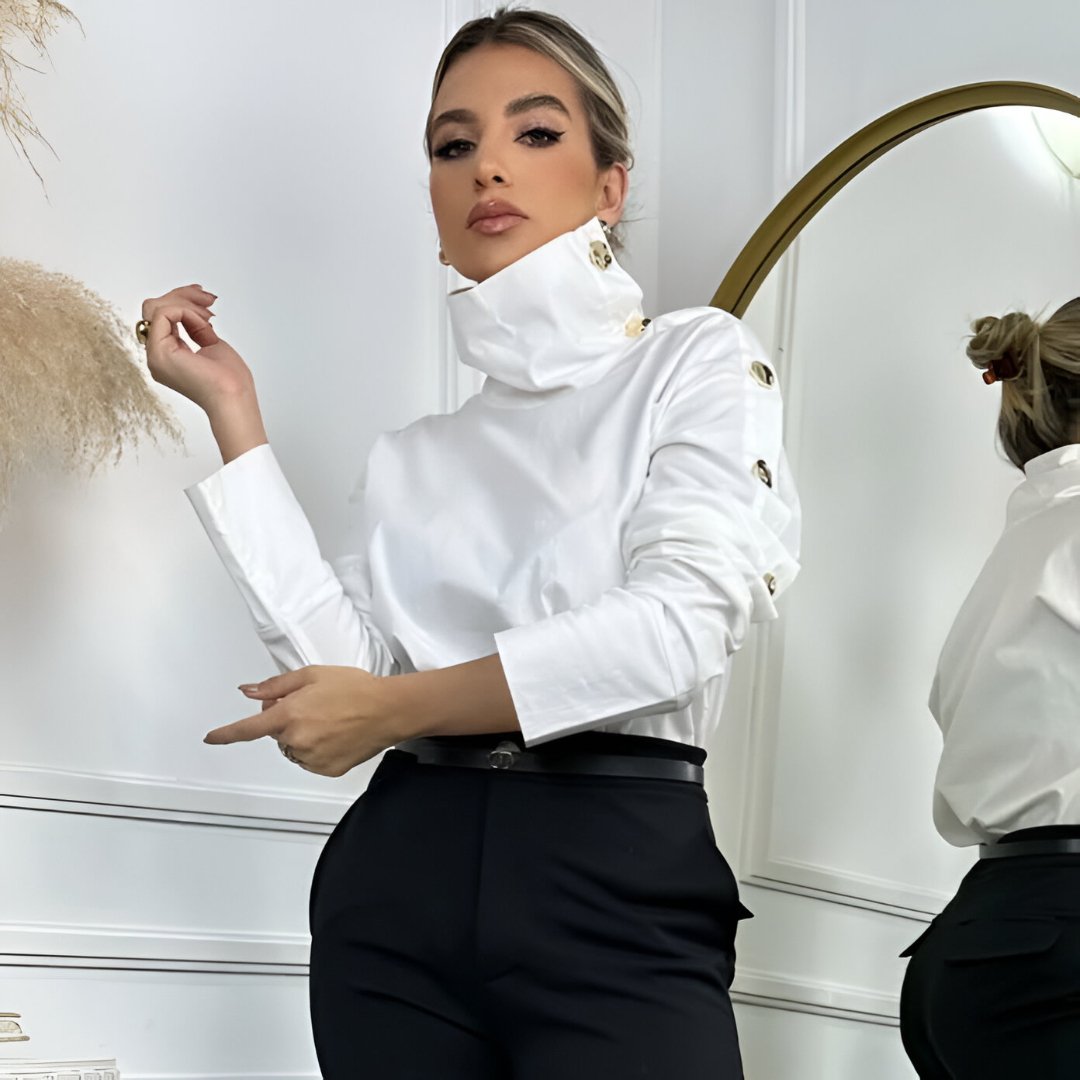 Seu design clean e sofisticado permite combinações que vão do look profissional ao casual refinado, garantindo estilo sem esforço. A cor branca traz leveza, frescor e um visual sempre atual — perfeita para todas as estações.