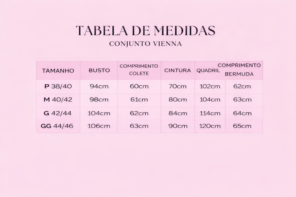 O colete alongado traz uma modelagem impecável que valoriza a silhueta com delicadeza, enquanto os botões frontais adicionam um toque clássico e refinado. Já a bermuda de cintura alta complementa o conjunto com um caimento estruturado, alongando a silhueta e garantindo um visual alinhado e extremamente elegante.