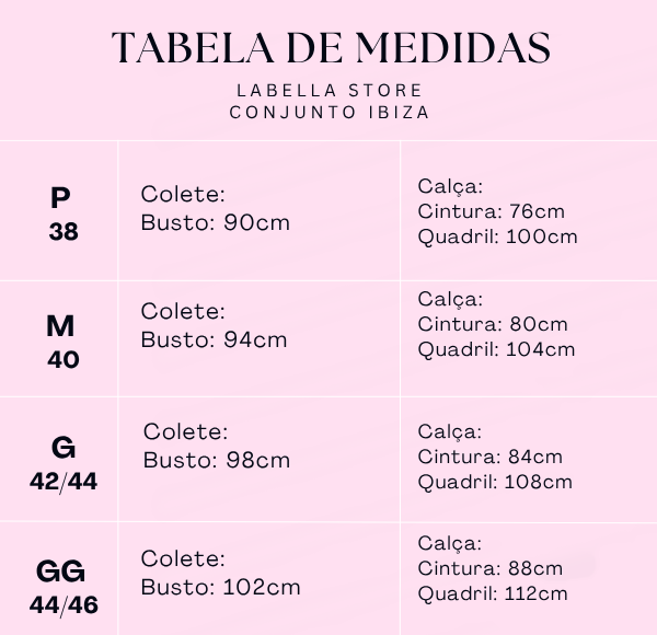 Versátil e atemporal, o Conjunto Ibiza é perfeito para compor produções que transitam do dia à noite com elegância — seja em ocasiões especiais, encontros sociais ou eventos que pedem um look marcante e sofisticado.