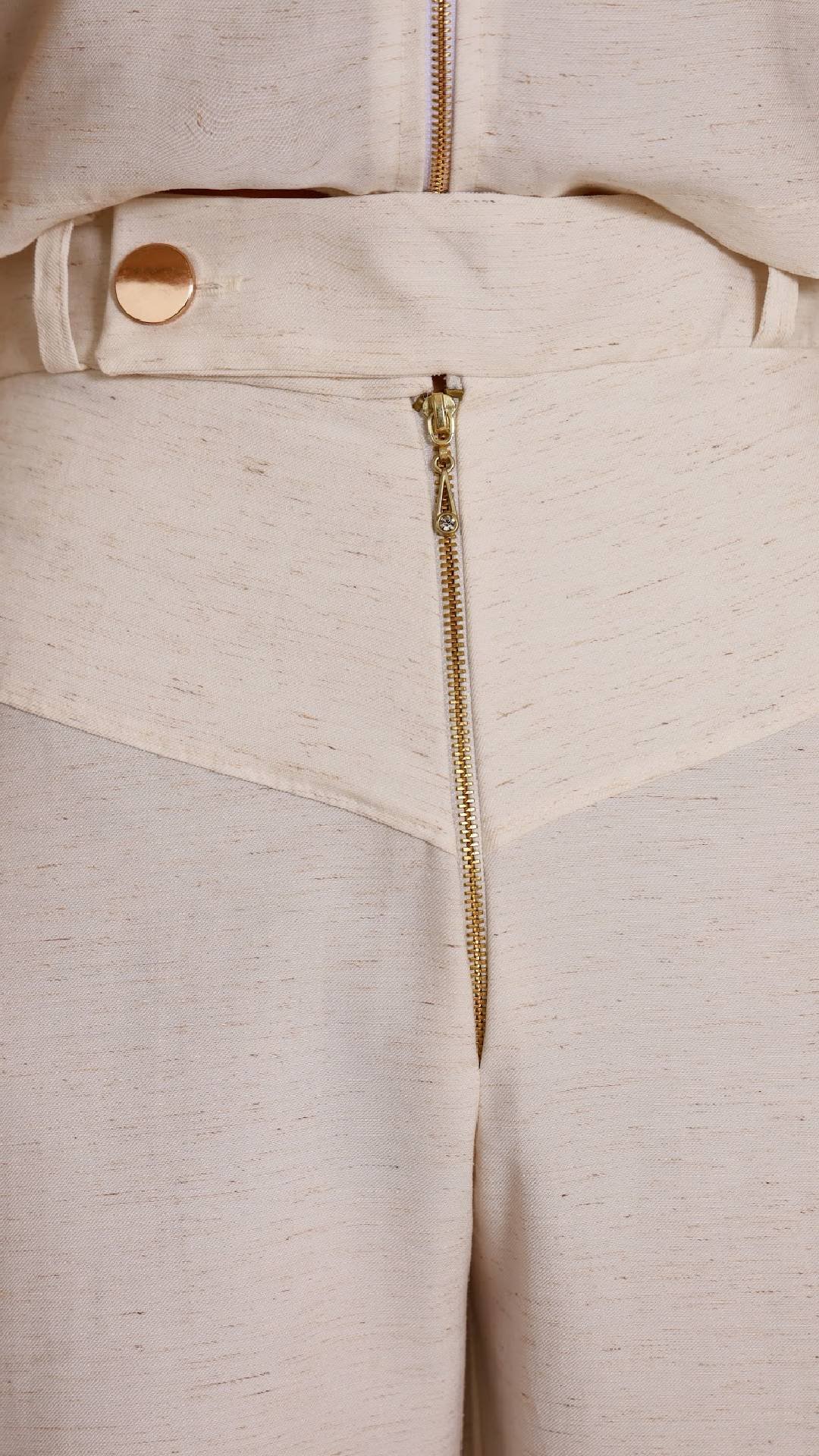 Confeccionado em alfaiataria Marrant com linho na composição, o conjunto Ibiza possui aviamentos dourados que trazem ao look o ar de sofisticação e imponência.