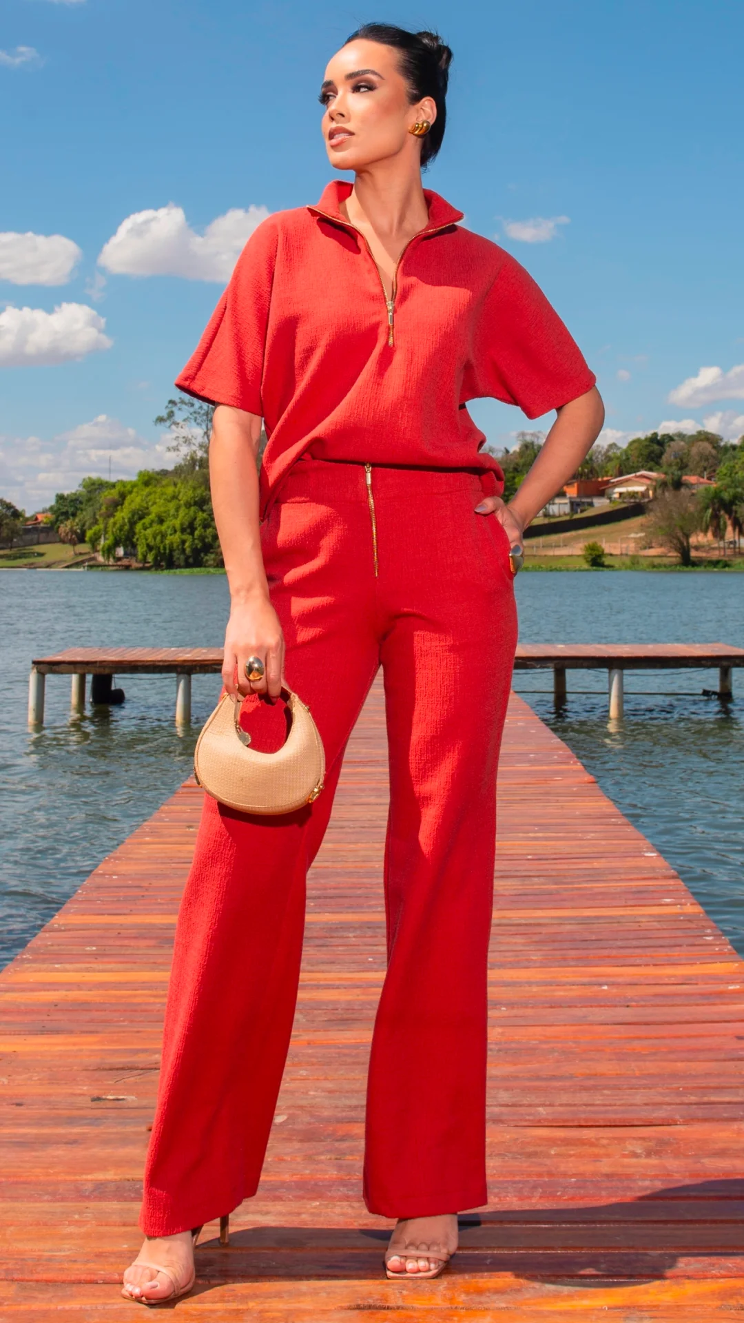 Conjunto monocromático em tom sofisticado, perfeito para composições elegantes com salto ou tênis para um look casual.