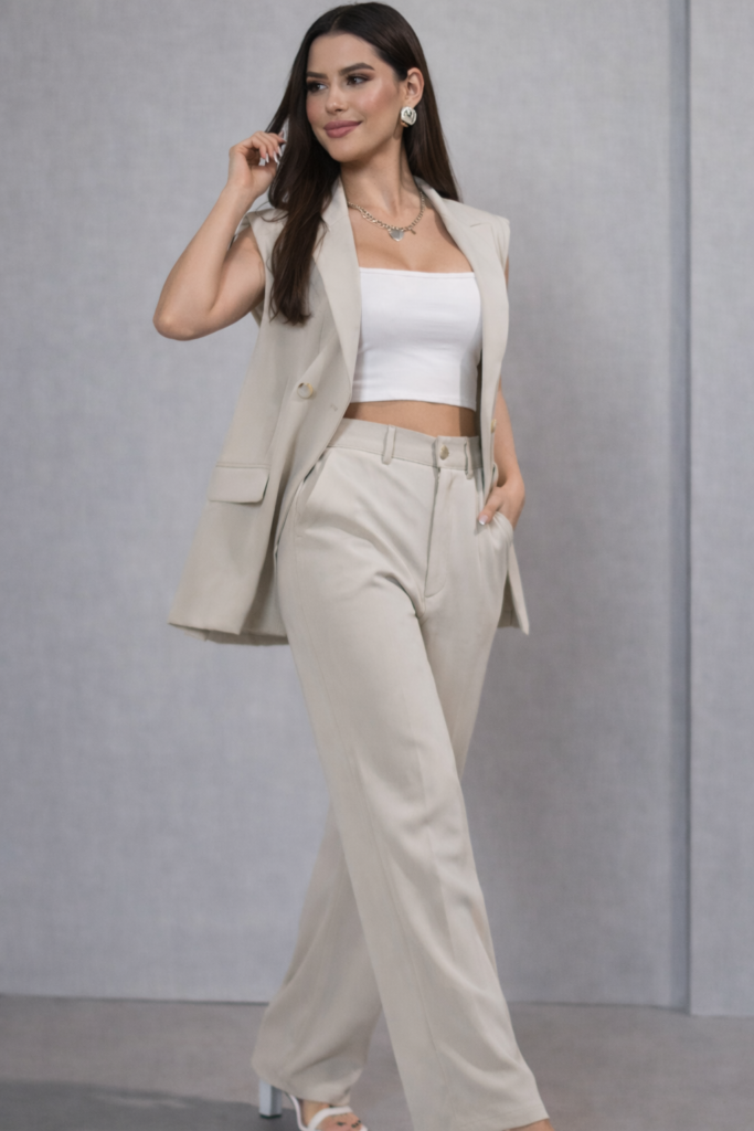 Esse conjunto de alfaiataria foi criado para mulheres que querem impor elegância sem esforço e se destacar com sofisticação em qualquer ambiente.