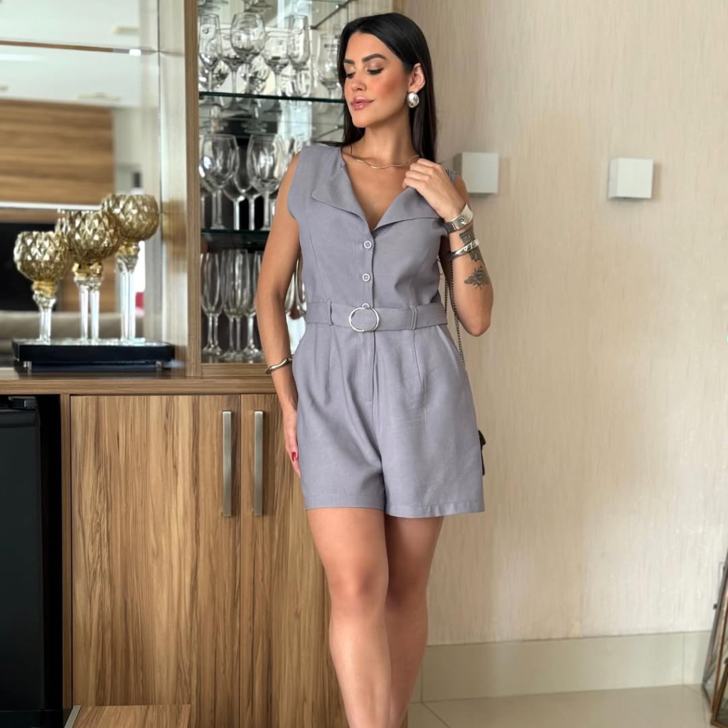 O destaque fica por conta da cintura marcada com cinto do próprio tecido, que proporciona ajuste perfeito ao corpo, além do short com modelagem levemente ampla, garantindo liberdade de movimento e um visual refinado.