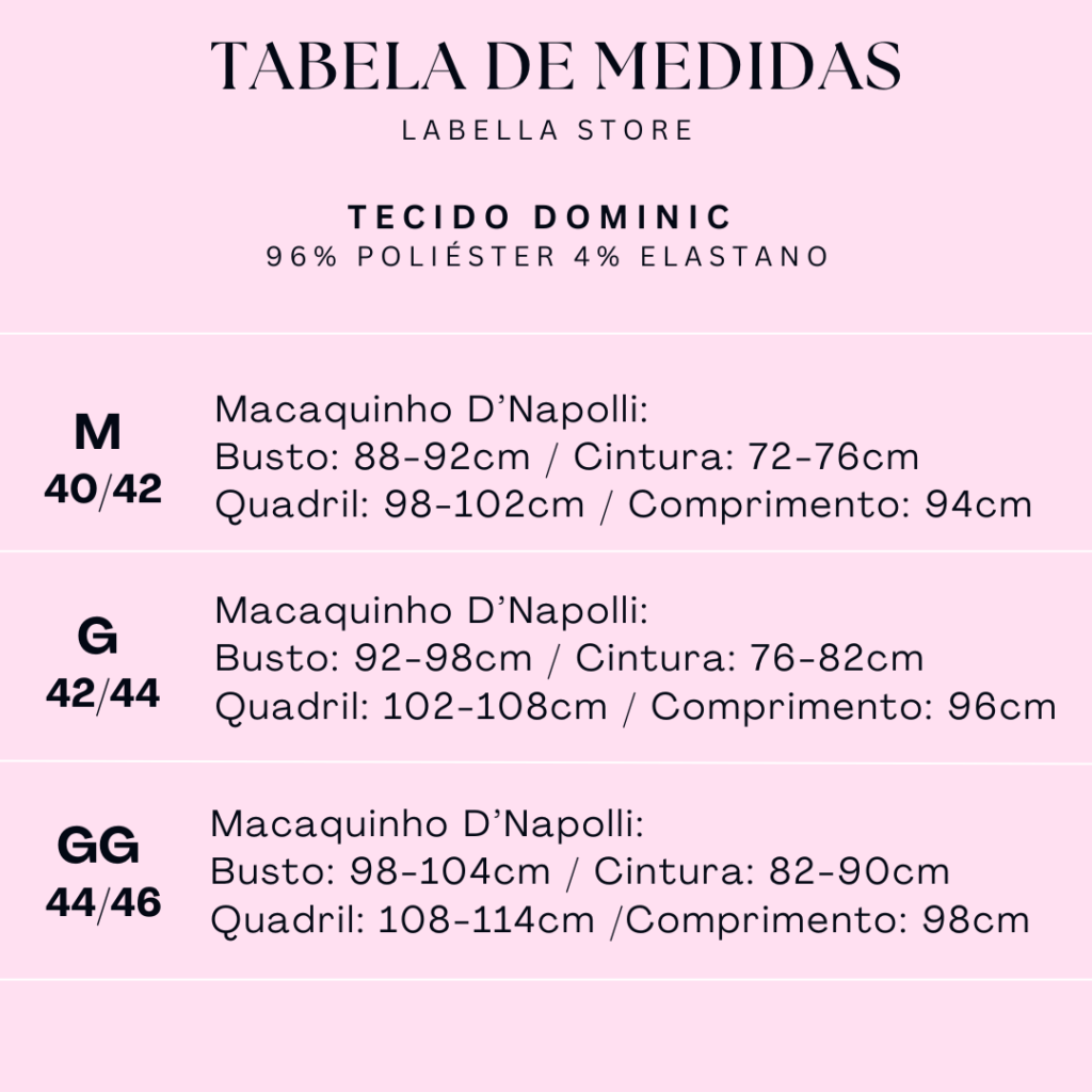 Elegância e Conforto no Dia a Dia: O macaquinho D’Napolli em tecido Dominic é a escolha ideal para quem busca sofisticação, praticidade e conforto em uma única peça. Com design moderno e acabamento impecável, ele une alfaiataria leve com um toque contemporâneo, perfeito para diversas ocasiões — do casual chic ao look mais arrumado.