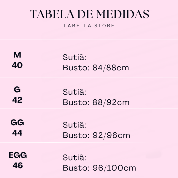 combina beleza e praticidade em um único produto, adaptando-se perfeitamente às suas necessidades. Instruções de Cuidado: Lavar à mão em água fria com sabão neutro. Não utilizar alvejante. Secar na horizontal para preservar a forma.